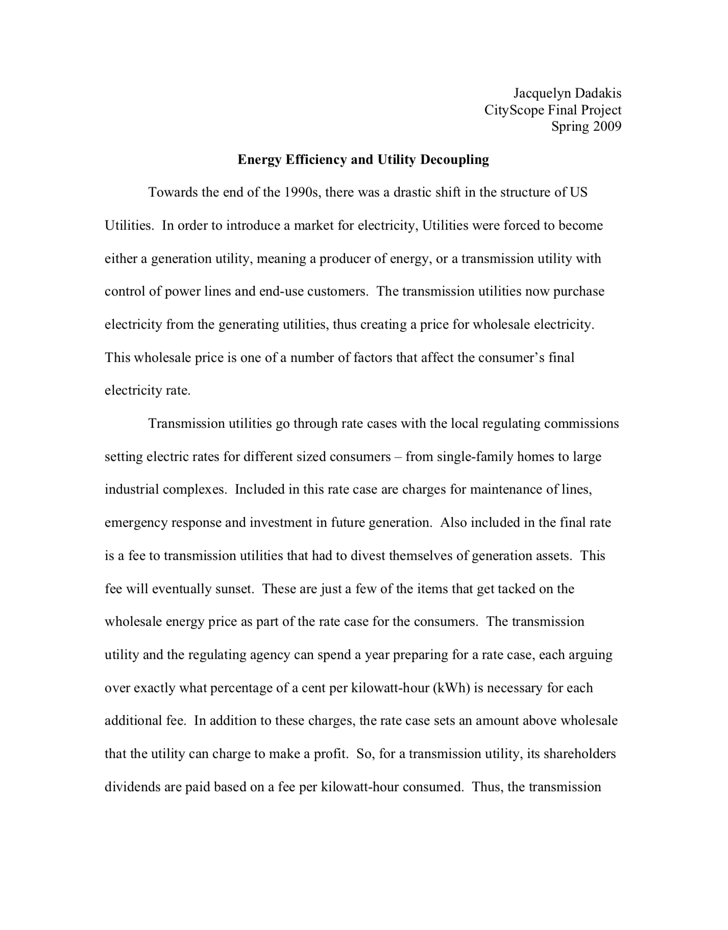 Energy Efficiency and Utility Decoupling Energy Efficiency and Utility Decoupling Project ReportLawrence Barriner IIMay 11, 2009Jacquelyn Dadakis Facebook0 Twitter LinkedIn0 Reddit Tumblr Pinterest0 0 Likes